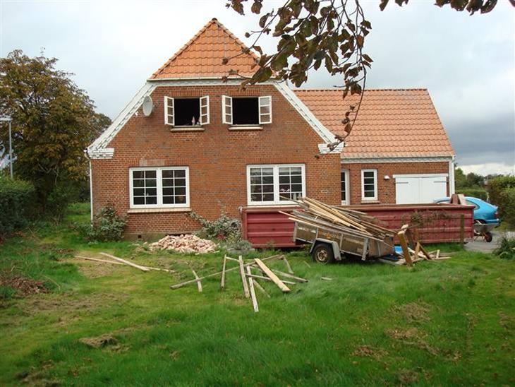Vi er snart færdige med en STOR ombygning. 1 sal stod rå ud til undertaget da vi købte huset for 5 år siden og vi har nu fået lavet soveværelse, walkin, 1 lille værelse og 1 større værelse + hems.