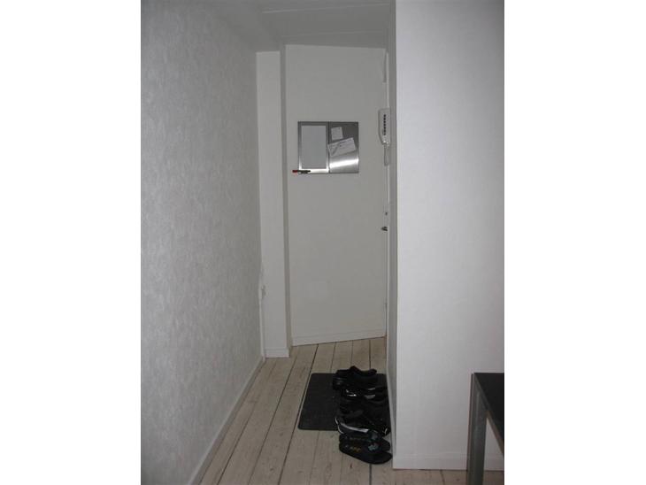 Lejligheden ligger i en ældre bygning gågaden i Aalborg.